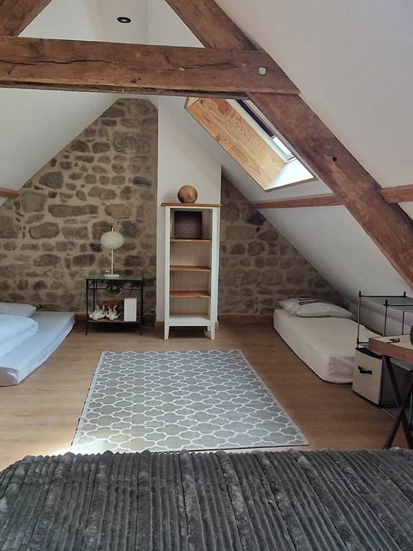 Annexée à la maison , cette magnifique chambre au mur en pierres apparentes vous offrira calme et indépendance - Elle est composée d'un lit double et d'un lit simple - Une salle de douche et sa toilette sont à disposition et privatisée -